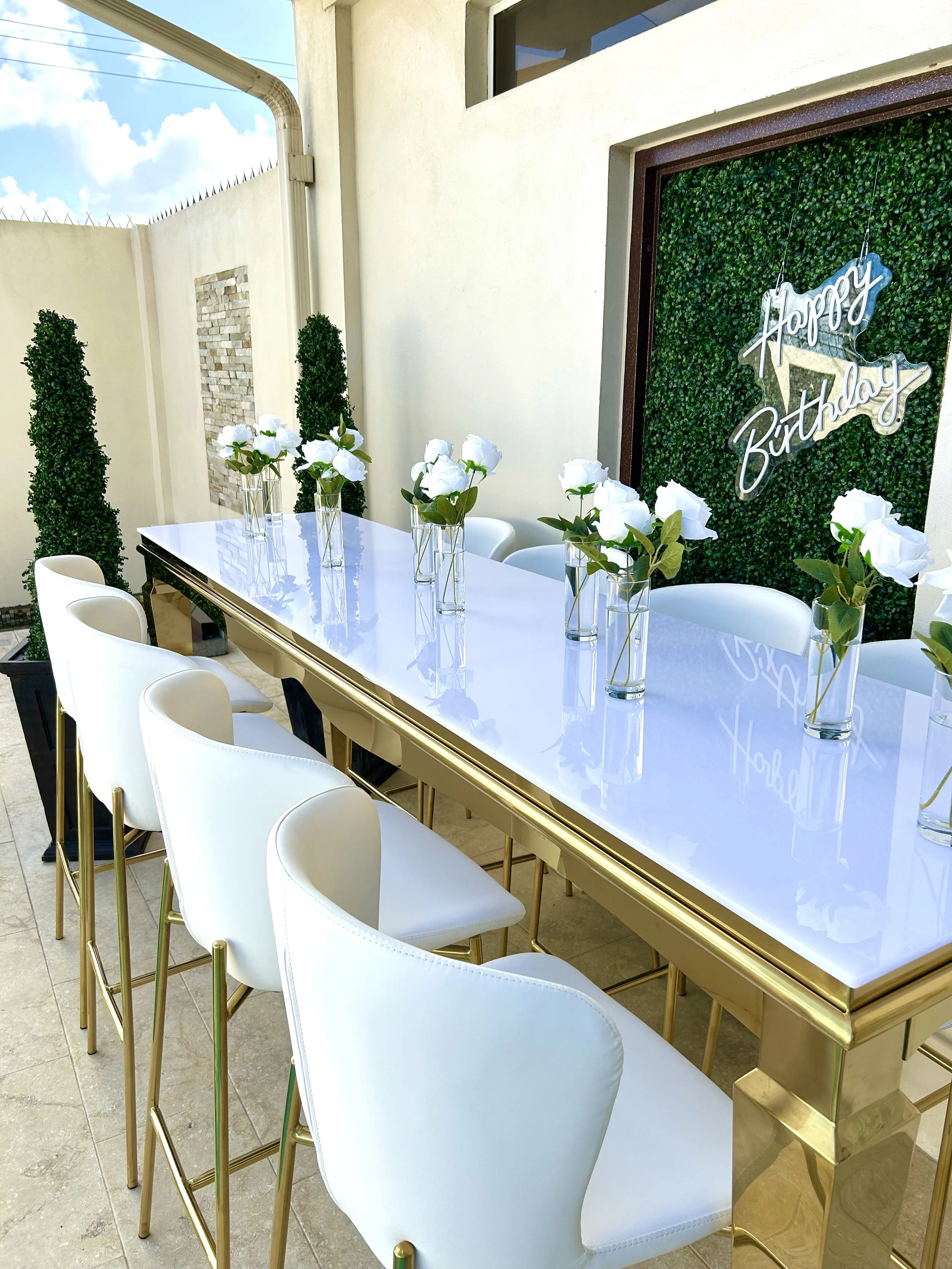 Created with the utmost attention to detail, this collection stands out as a statement piece at any event and consists of our Ayra Stool & Luna Table.